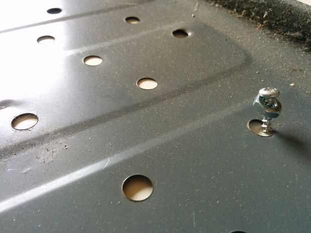 2. colocación -tornillo tornillos a través de la tabla en el panel Biblioteca, usando una arandela entre la cabeza del tornillo y tabla de planchar mejor aferrarse a la Junta. Tornillos para madera deben ir directamente en el panel sin necesidad de perfore los orificios. Para ello a lo largo de la frontera de la tabla de planchar para sostener con seguridad en el lugar.
