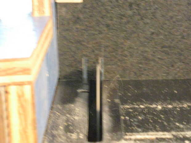 Después de que usted consigue que para ambos "estante" tableros te puede empezar a trabajar en las piernas. Simplemente lo mismo que el otro sube a medir un 1 1/2" desde el mismo lado por el extremo largo en lugar de 1 pulgada y sólo te hacen dos muescas por la pierna. (vea foto abajo)