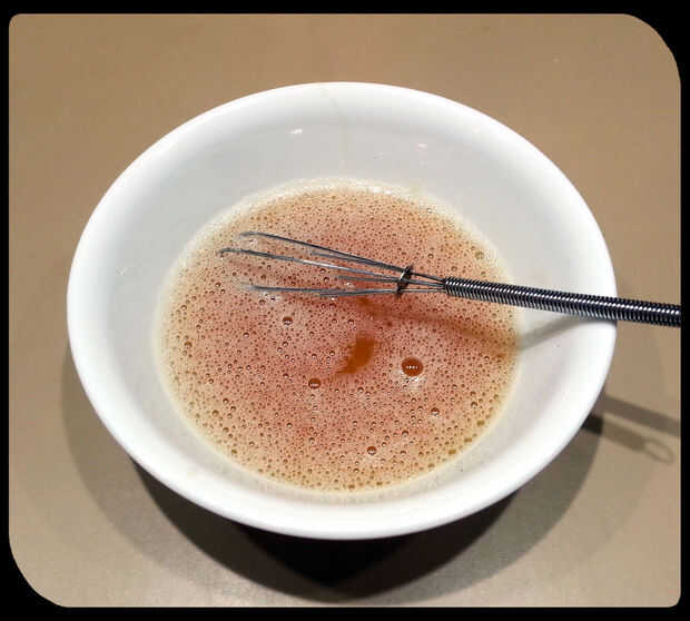 Coloque la miel y el limón en un tazón y bata vigorosamente hasta que ligue.