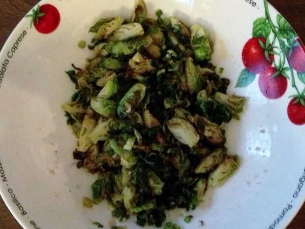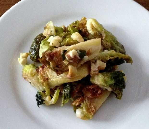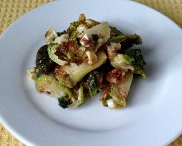La receta original aquí: http://www.foodnetwork.com/recipes/fried-brussels-sprouts-with-walnuts-and-capers-recipe/index.html