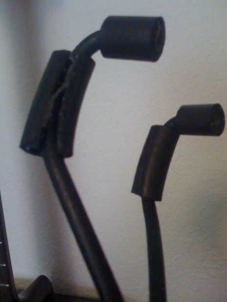 A continuación, me gusta hacer algunos línea de combustible manguera / goma y partirla por la mitad a mi soporte como seguro de daños de Guitarra adicional. Con las mitades separadas, encolar con el adhesivo de su elección. A menudo utilizo una pistola de pegamento caliente para sellar los extremos de la goma hacia atrás juntos alrededor del bracket.