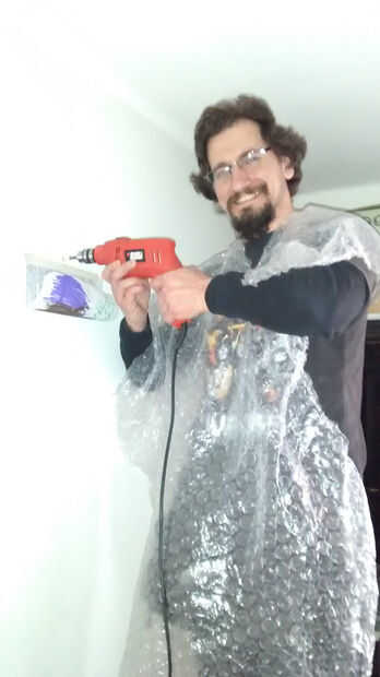 Ademas es tipico cuando estas perforando encontrarse con una burbuja en la pared lo hace salte ladrillo molido para todos lados entonces trata de cubrirte con algo que no debas limpiar después! XD