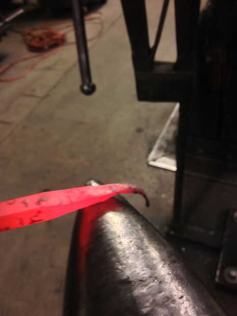 Voltear el material y golpear el metal hacia usted para conseguir una punta de desplazamiento. El material debe ser contra el yunque, y el ángulo debe dictar cómo se ve el rizo.