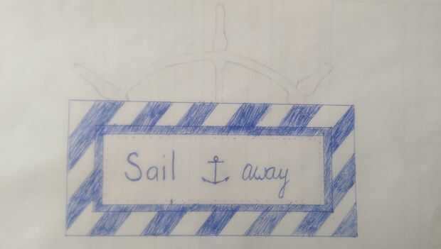 para recopilar mis ideas y empezar a dibujar algunos diseños. Así que se sentó, comenzó a garabatear y subió rápidamente con algo que me ha gustado. Yo estaba pensando un tablero pintado rectangular fijado a la pared con ganchos en la parte trasera, donde pude conectar cadenas que sostendrían las postales. Para la pintura decidí ir por un tema náutico como recientemente había pasado el examen de navegación (yay) y pensé que encajaría muy bien en mi recibidor.