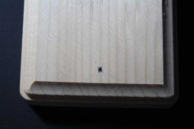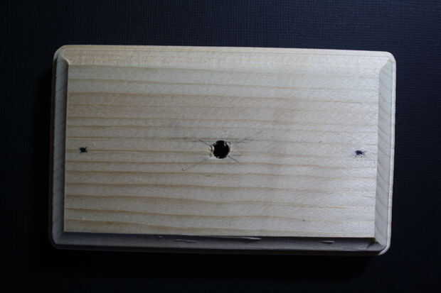 Luego mides para los orificios que se monte su suspensión a la pared. Pongo mis agujeros 1/4 de pulgada del borde. A continuación, perfore dos agujeros con la broca de 11/64.