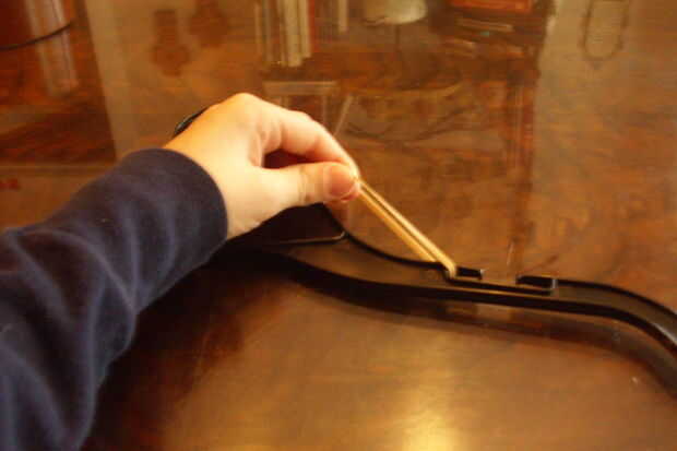 luego ponerla sobre el gancho y gancho en el otro lado.