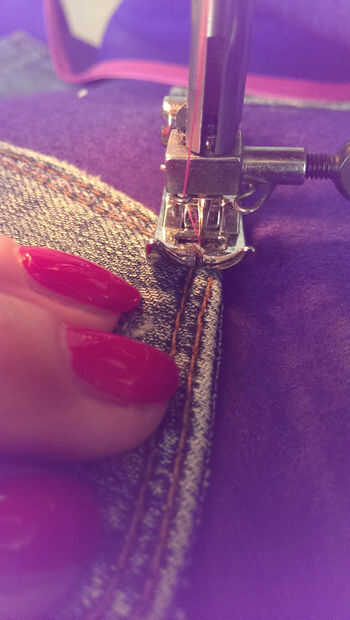 Máquina de coser los bolsillos a la pieza de forro, coser alrededor de los lados y la parte inferior de la bolsa sólo!.