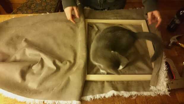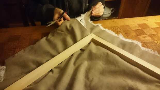 Averiguar cómo doblar las esquinas, cortar el tamaño final de la tela y comienza a introducirlo.