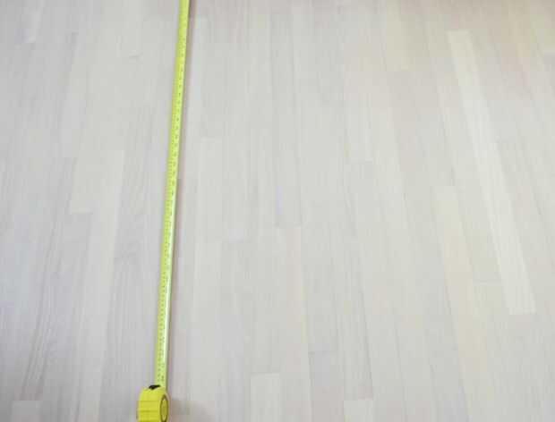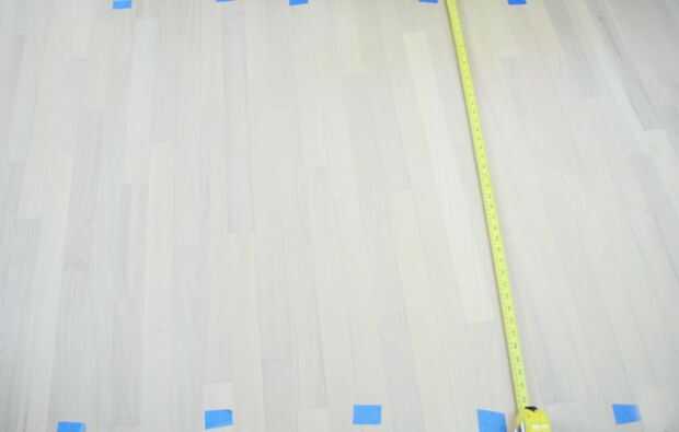 Luego, coloque la cinta métrica sobre el piso. Poner dos trozos de cinta de pintor para marcar la parte superior y parte inferior de esta medida. A continuación, repita este paso 5 veces. Si ves la imagen, podría ser más fácil de entender. Básicamente, estoy marcando mi altura de pared sobre el terreno.