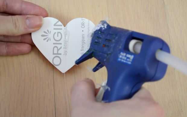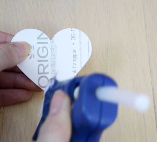 - Hacer una línea de pegamento hacia abajo el corazón.