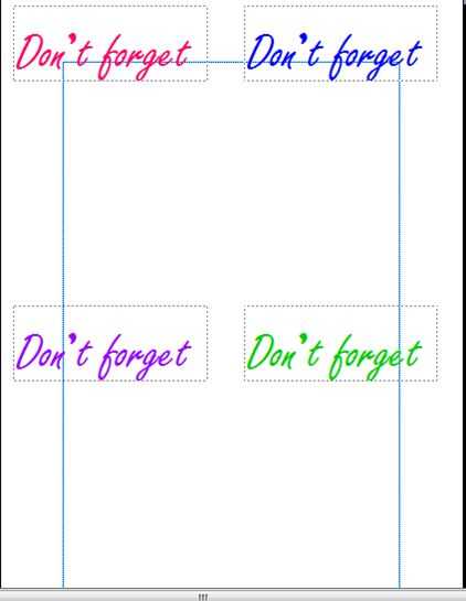 .. .place 4 cajas en forma de un cuadrado aproximadamente de 16 cm por 16 cm. (este fue el tamaño del papel que estaba usando, da una buena proporción de las hojas solo memo) pero usted puede cortar a cualquier tamaño si quieres hojas de mayores o menores. Elegí las palabras «No olvidar» como su colgante por mi puerta. Yo lo veo antes te dejo y me detiene olvidar muchas cosas. Escoge tu propio texto y colores, esto es donde usted puede ser creativo.