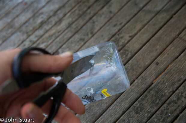 Cortar la parte inferior de la botella para que sea la misma altura que la cesta y atornille la tapa en su lugar.