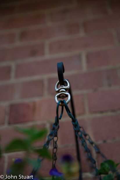 También utilicé algunos thingys swivelly (a términos muy técnicos que conozco) para sujetar las canastas a los soportes de suspensión. Esto le permite activar las canastas de cada par de días para que la bola obtiene incluso sol y promueve el crecimiento consistente y uniforme alrededor de todo el camino.