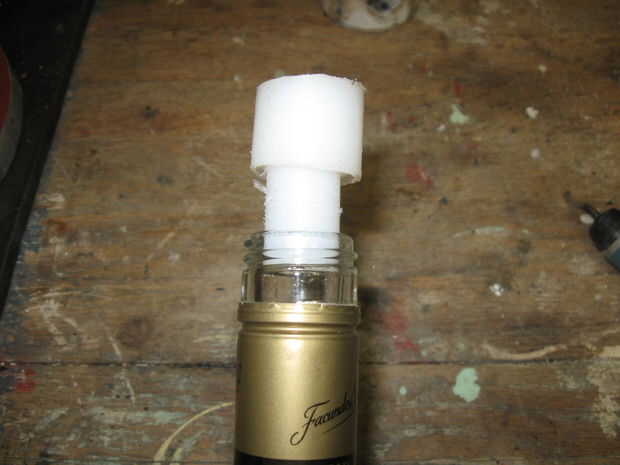 Es importante que queden firmes pero no fricción ajuste. Si el tapón es demasiado grande se romperá el cuello de la botella. La combinación descrita anteriormente fue un ajuste perfecto de la botella que elegí.