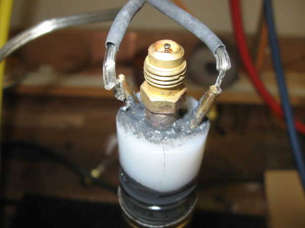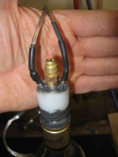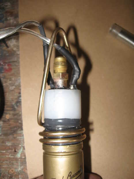 La suspensión de latón fue luego enroscarse en el cuello del tornillo de la botella.