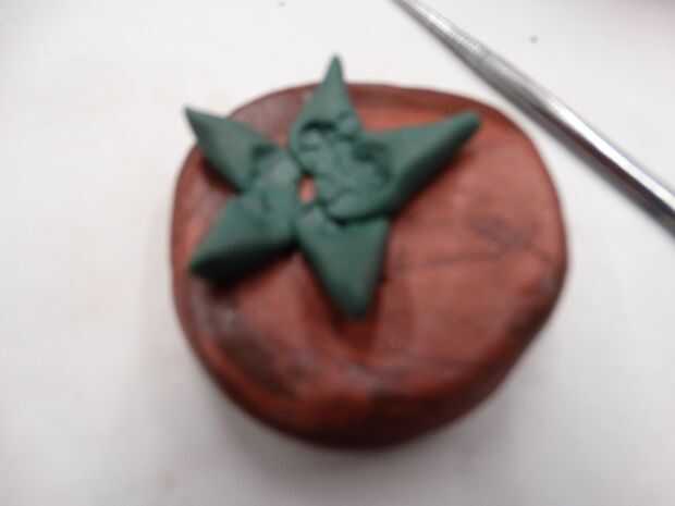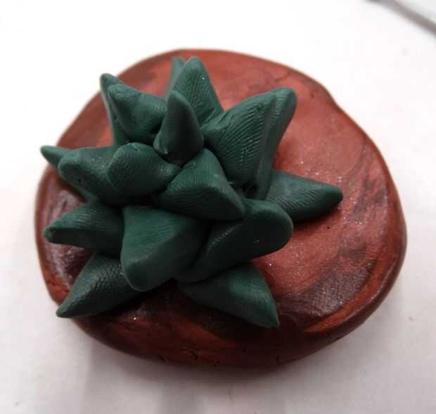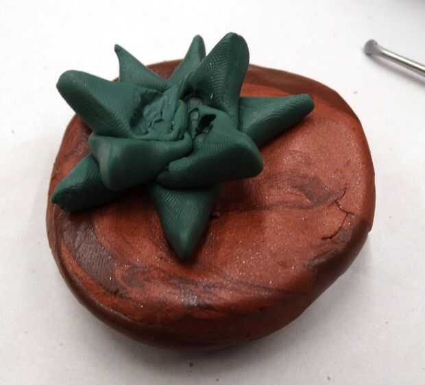 -Coloque la hoja que acaba de hacer en la tierra y empuje la parte que estará en medio de la planta de abajo con una herramienta de arcilla de extremo redondeado. Esto ayuda a la hoja de pegarse al suelo y ayuda a mantener la suculenta forma general más adelante.