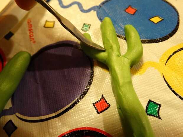 -utilizar una herramienta sharp-ish para borrar las costuras de la arcilla