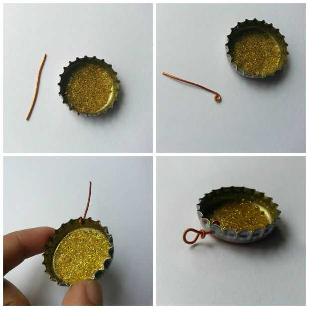Tome un pedazo pequeño (6 cm) de alambre de arte y hacer un pequeño bucle. Insertar la parte recta del alambre a través del orificio hecho previamente. Hacer otro bucle pero esta vez que sea suficientemente grande como para tomar a través de la cadena. Después de hacer el lazo de la bobina el cable restante y ajuste extra si es necesario.