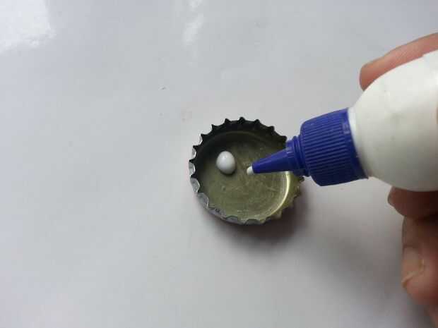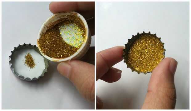 Vierta una capa delgada de pegamento blanco en la tapa. Verter el polvo de brillo sobre el pegamento y mezclar muy bien. Deje que el pegamento se seque, esto podría tomar un tiempo o se puede usar secador de pelo para el pegamento se seca rápidamente.