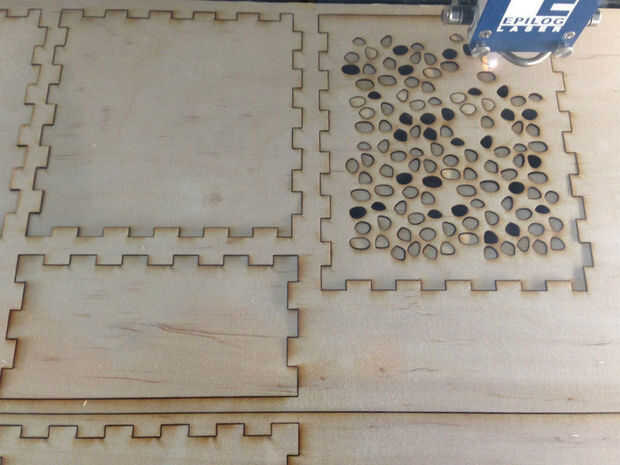 Para cortar la madera contrachapada del abedul, utilicé un cortador del Laser del Epliog fusión con 12/100/20 de 60 vatios de velocidad / potencia / ajustes de frecuencia y una resolución de 600 dpi.