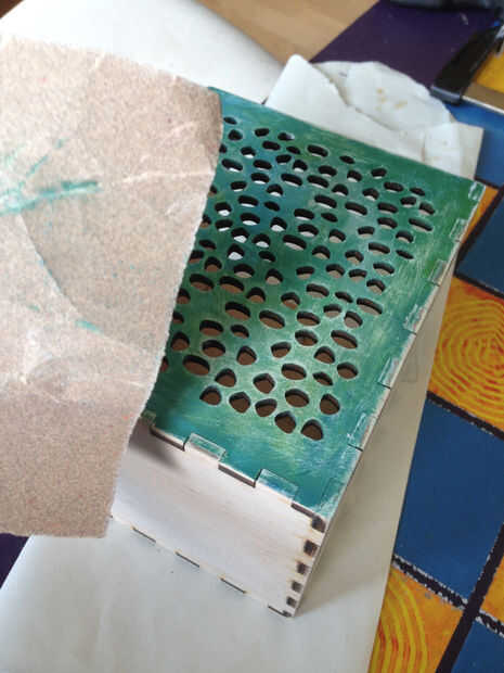Después de que la pintura esté seca, lijar sus bordes para limpiar la pintura y en mi caso, las áreas pintadas que quería aclarar un poco más de arena.