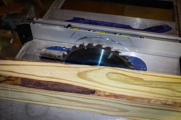 El 4 x 4 que he comprado estaban en forma bastante áspera. Para limpiar, usé una sierra de mesa con la cuchilla a la posición más alta (3,75") y cortar un ¼" de cada lado del poste. Las dimensiones del último post son ahora 3 "x 3".