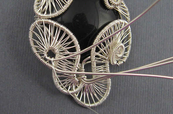 Este tutorial te enseña cómo hacer un colgante intrincadamente envuelto con remolinos bandas de alambre tejido en la parte delantera.Puede tejer la delantera en casi cualquier patrón que desee. Instrucciones para el diseño se muestra aquí como una su