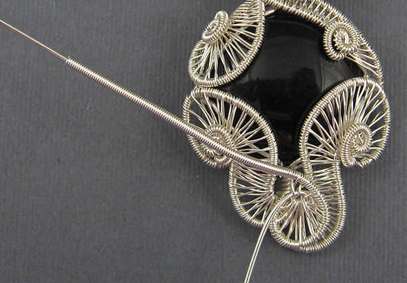 Este tutorial te enseña cómo hacer un colgante intrincadamente envuelto con remolinos bandas de alambre tejido en la parte delantera.Puede tejer la delantera en casi cualquier patrón que desee. Instrucciones para el diseño se muestra aquí como una su