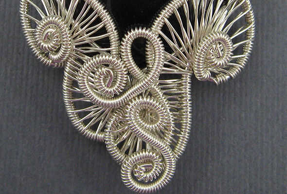 Este tutorial te enseña cómo hacer un colgante intrincadamente envuelto con remolinos bandas de alambre tejido en la parte delantera.Puede tejer la delantera en casi cualquier patrón que desee. Instrucciones para el diseño se muestra aquí como una su