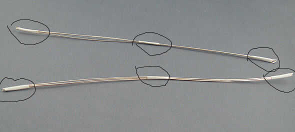 Corte el cable de 20g en 6 pedazos iguales (cerca de 9" de largo). Separe los cables en 2 grupos de 3 hilos. Usando la cinta, envuelva cada grupo en tres áreas. Envoltura de uno en cada extremo y uno en el centro. Tenga cuidado para asegurarse que los paquetes, cuando envuelto, en posición plana y cables no se cruzan.