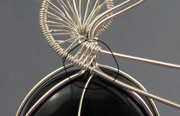 Usando el tejido mencionado anteriormente y manteniendo los cables paralelos entre sí, tejen una sección corta. Hará una parada donde el alambre exterior de la curva alcanza la parte superior de la cabujón.