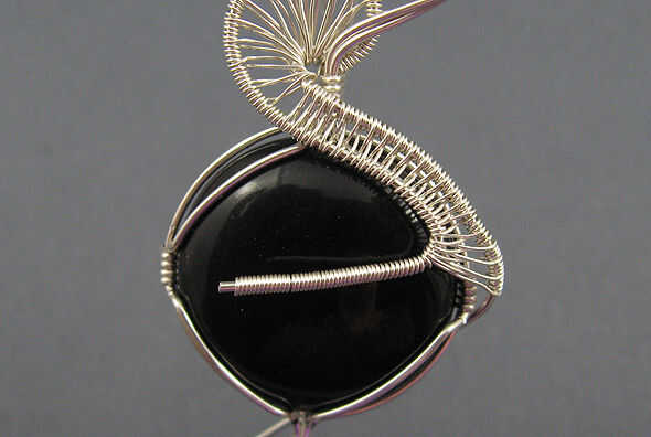 Este tutorial te enseña cómo hacer un colgante intrincadamente envuelto con remolinos bandas de alambre tejido en la parte delantera.Puede tejer la delantera en casi cualquier patrón que desee. Instrucciones para el diseño se muestra aquí como una su