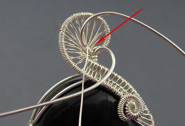 Corte otro 4' pedazo de 28g de alambre y envolver el extremo alrededor del alambre de curva exterior 5 veces (puede ser más fácil hacer las vueltas hacia el final del alambre y deslícelo en su lugar luego). No te olvides de cortar el cable en el principio de la envoltura.