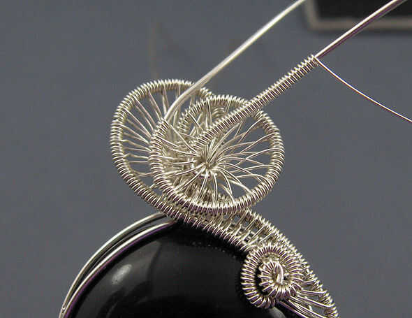 Este tutorial te enseña cómo hacer un colgante intrincadamente envuelto con remolinos bandas de alambre tejido en la parte delantera.Puede tejer la delantera en casi cualquier patrón que desee. Instrucciones para el diseño se muestra aquí como una su