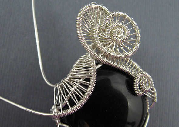 Este tutorial te enseña cómo hacer un colgante intrincadamente envuelto con remolinos bandas de alambre tejido en la parte delantera.Puede tejer la delantera en casi cualquier patrón que desee. Instrucciones para el diseño se muestra aquí como una su
