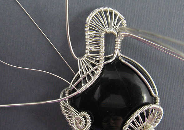 Este tutorial te enseña cómo hacer un colgante intrincadamente envuelto con remolinos bandas de alambre tejido en la parte delantera.Puede tejer la delantera en casi cualquier patrón que desee. Instrucciones para el diseño se muestra aquí como una su