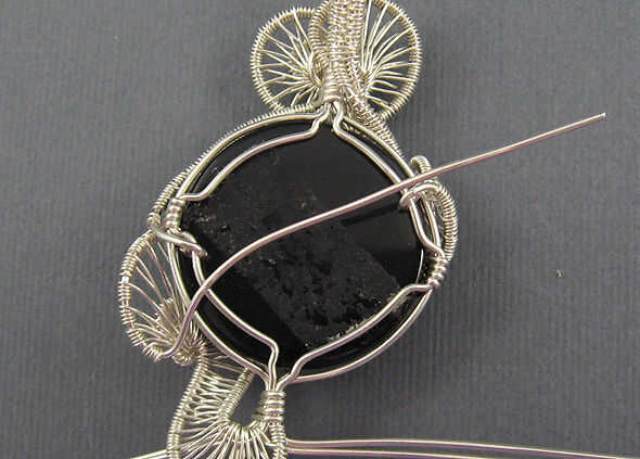 Este tutorial te enseña cómo hacer un colgante intrincadamente envuelto con remolinos bandas de alambre tejido en la parte delantera.Puede tejer la delantera en casi cualquier patrón que desee. Instrucciones para el diseño se muestra aquí como una su