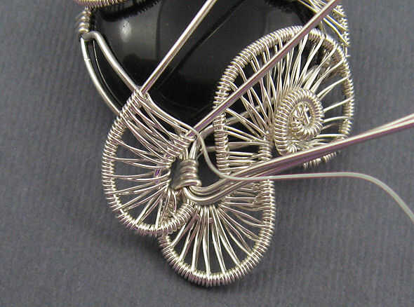 Este tutorial te enseña cómo hacer un colgante intrincadamente envuelto con remolinos bandas de alambre tejido en la parte delantera.Puede tejer la delantera en casi cualquier patrón que desee. Instrucciones para el diseño se muestra aquí como una su