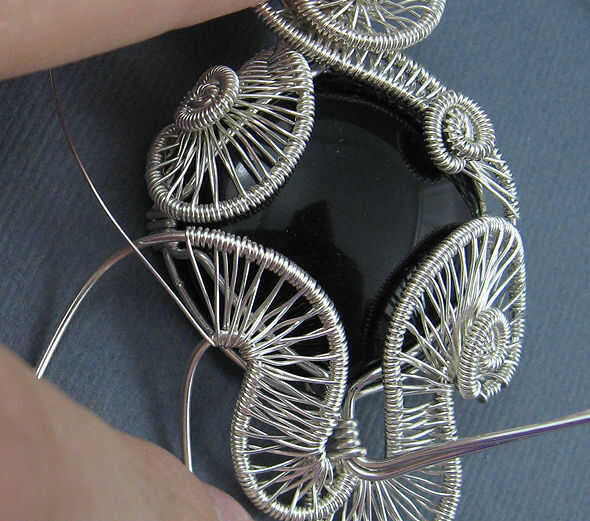 Este tutorial te enseña cómo hacer un colgante intrincadamente envuelto con remolinos bandas de alambre tejido en la parte delantera.Puede tejer la delantera en casi cualquier patrón que desee. Instrucciones para el diseño se muestra aquí como una su