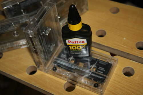 C-casetes con claro cubiertas y borrar casette bodys, 12 unidades.
