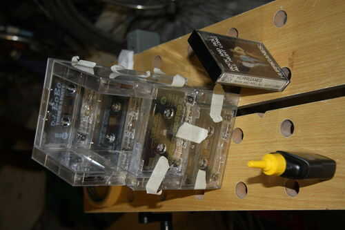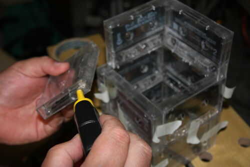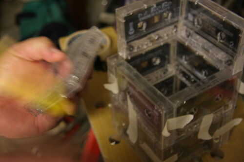 Cintas de pegado es muy fácil. Recuerde poner cada tapa del cassette hacia el exterior y en la misma dirección. Utilizar cinta de pintor para guardar cassettes en lugar hasta que el adhesivo se seque.