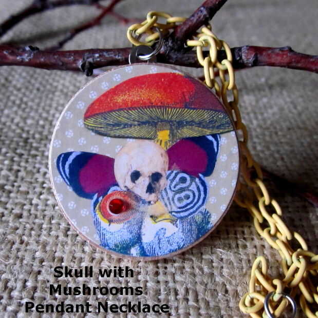 Si no quieres hacer tu propio colgante, este cráneo con el colgante de setas diseñados cotiza en mi tienda en Etsy.