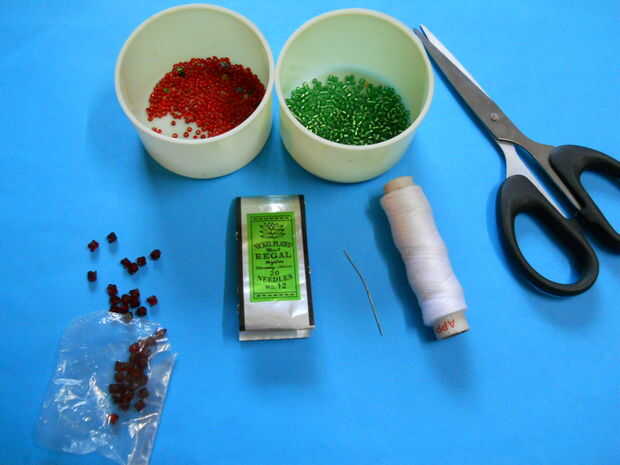 para hacerlo que necesitamos -aguja de tamaño 12 -2 granos coloreados -granos de cristales -hilo de rosca -tijeras