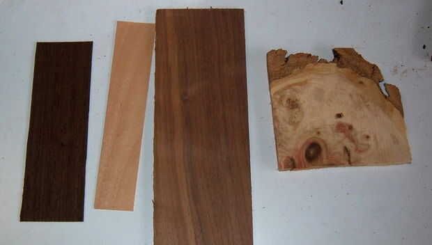 Aquí es el pedazo de llama box elder, algunas nueces y un trozo de chapa del arce y un trozo de chapa de wenge.