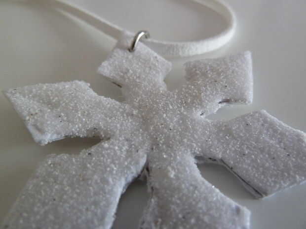 cuando empecé a ver todos los proyectos de nieve por aquí en instructables, quería hacer algo nieve relacionados con así. Sin embargo, no estaba nevando. Recordar que tenía este color arena, así que he buscado y había también un pequeño recipiente de arena blanca :D Mi primera idea era añadir a los granos, haciéndolos lucir como bolas de nieve, pero ya que los granos fueron pulidos, no quedarse en el camino que quería que. Así que decidí ir con un copo de nieve de papel y utilizar laca de papel para agregar la arena. Cuando visto desde la distancia, esto sólo se ve como un colgante copo de nieve blanca, pero cuando usted mira más cerca, ves cristales por todas partes. Les espero guste!