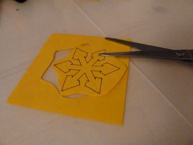 Cortar tus copos de nieve sólo dibujados utilizando los contornos. Pegamento en el papel grueso y recorte otra vez. Repita el corte y el pegado hasta que su cuenta el grosor que desee.