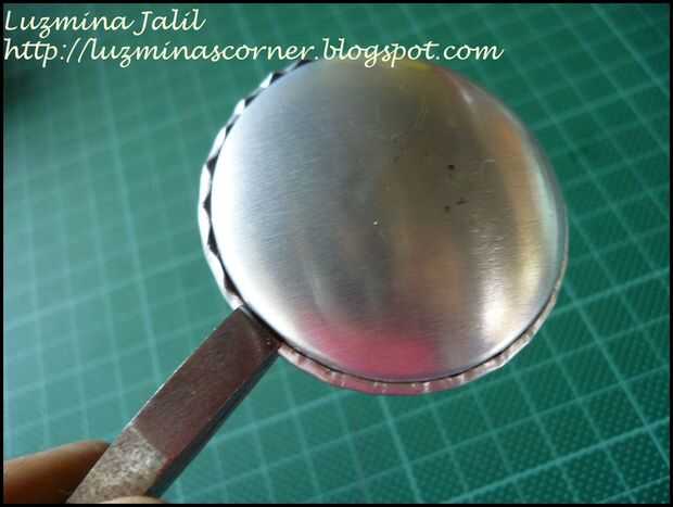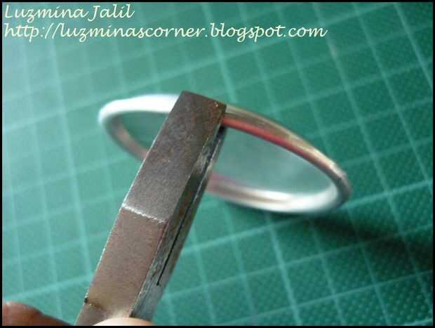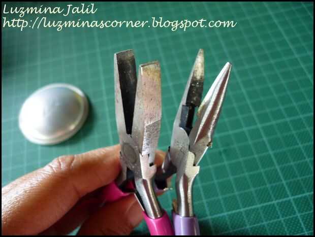 1. con la pinza fina, ligeramente doblar los bordes hacia el centro del colgante.