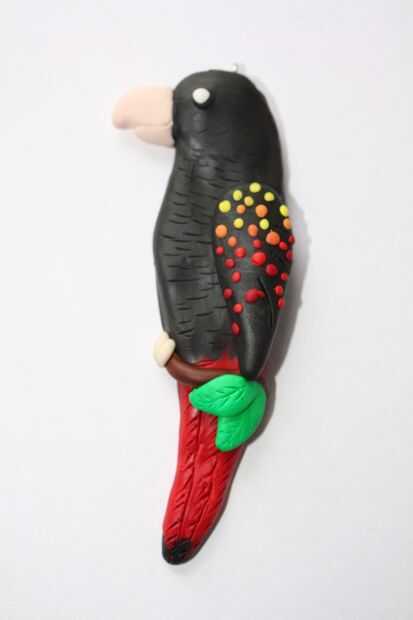 Así como las características de su pájaro, también puede añadir textura en este punto. Puede usar la uña para hacer pequeñas plumas en el cuerpo y una herramienta para hacer las plumas de la cola grande.