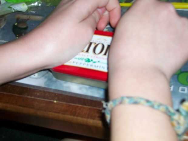 Pulsar con el envase de altoids y utilice la tapa pequeña para cortar en un pequeño disco.