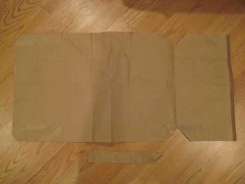 primer paso es cortar el patrón para parecerse a la imagen de arriba. empezar por desarmar su bolsa de papel por lo que sólo tiene una hoja grande de papel. determinar cómo ancho desea su bolsillo y cortar la bolsa por lo que hace una tira larga de gran. acabo de hacer mío el ancho de la bolsa que fue de aproximadamente 16 pulgadas de ancho. dobla un lado para que el extremo llegue cerca de dos tercios hacia abajo de la bolsa (ver notas en la imagen). Ahora vas a plegar el otro lado, pero dar extras entre su nuevo doblez y el borde del otro lado que ha sido doblado en cerca de dos pulgadas. Lo siento si esto no tiene mucho sentido. Básicamente, sólo tratar de hacer que parezca el cuadro o el patrón.